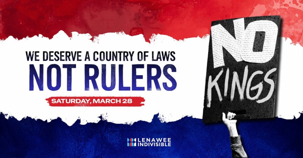 No Kings 3—Saturday, March 28, 11 a.m. to 1 p.m. Comstock Park in Adrian, MI.